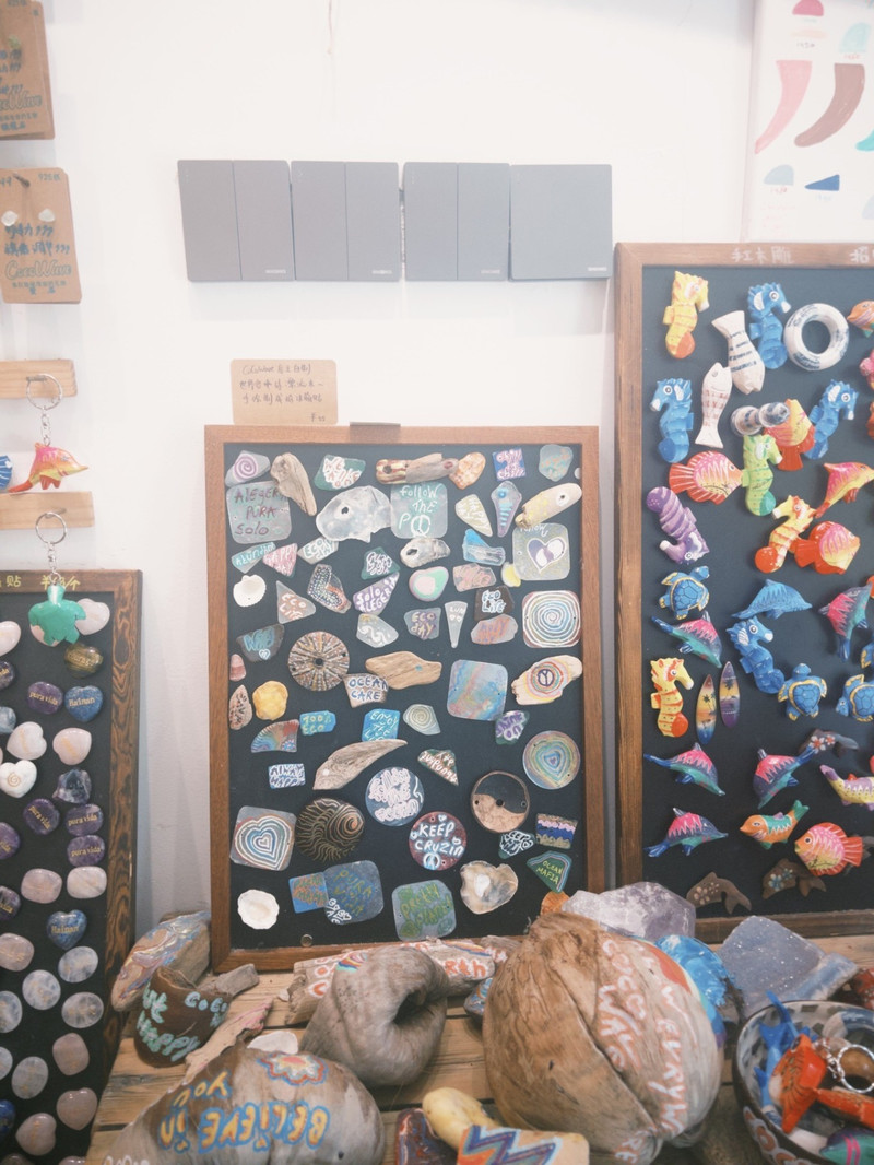 冰箱贴非常特别,是用捡到的漂流木等做的,但55一个真的下不去手,最后买了几个贝壳勺子。旁边是coconutsurf手工冰淇淋,点了芭乐口味的蛋筒冰淇淋,怪好吃的,就是非常清新,可太解腻了。就是蛋筒稍稍有点焦糖味甜了点。