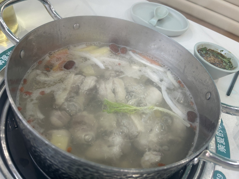 午餐在旁边的嗲嗲的椰子鸡,买的298套餐。四个青椰水做锅底配上半只文昌鸡,煮四分钟即可。鸡肉Q弹滑嫩。