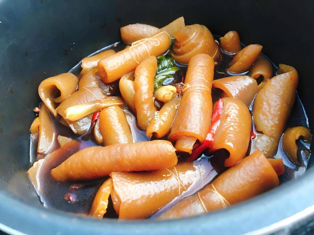 口感层次丰富:外皮酱香浓郁,内层胶冻滑嫩,入口先咸香后回甘,冷热皆宜。