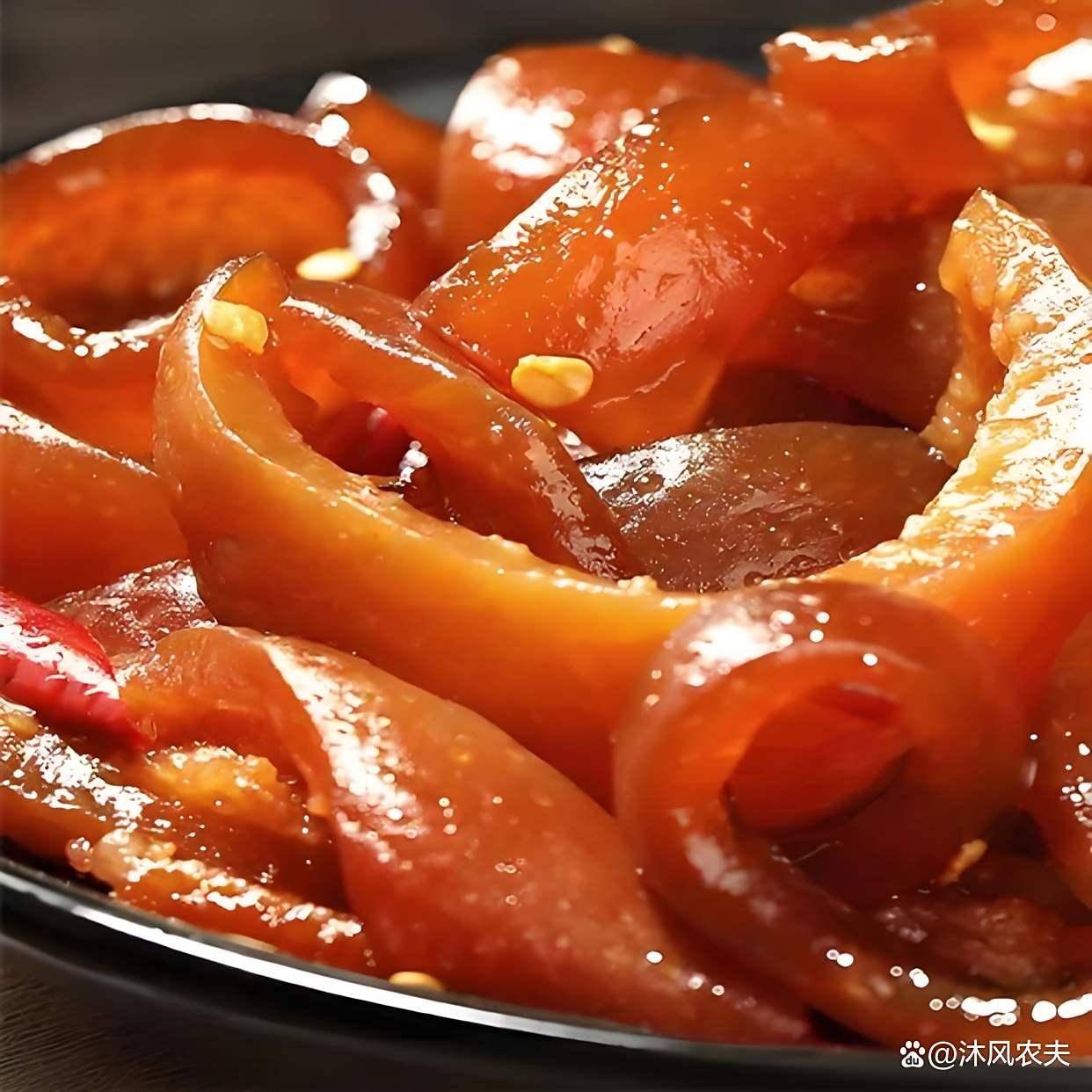 猪皮曾被视作下脚料,但通过卤制工艺,其胶原蛋白转化为胶冻,形成独特Q弹口感。中国各地卤汁配方差异(如广东偏甜、四川麻辣)赋予其多样风味。