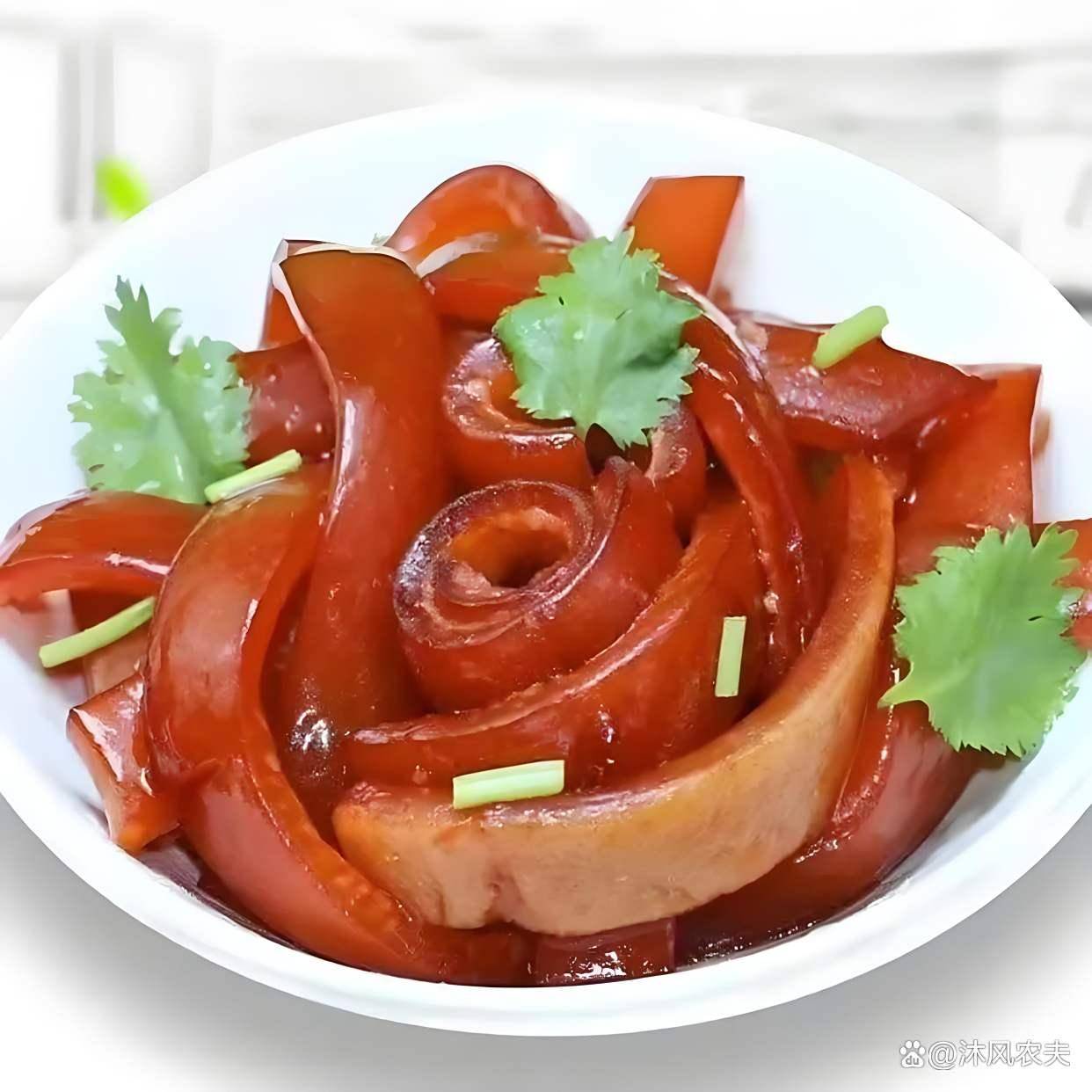 卤制完成的猪皮呈现出诱人的酱红色,表面泛着油光。此时的猪皮既有韧性又带软糯,胶原蛋白完全释放,形成了独特的口感。切片装盘时,刀工也很讲究,太厚影响口感,太薄容易破碎。经验丰富的厨师会斜刀切制,这样既能展现猪皮的纹理,又便于入味。