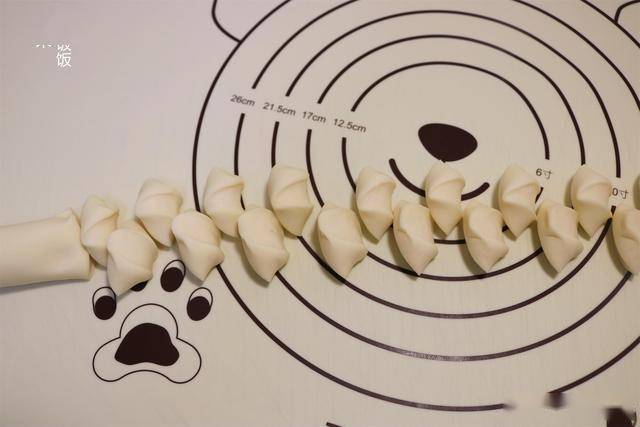 8,醒好的面团搓成细长条,切成大小均匀的小剂子。