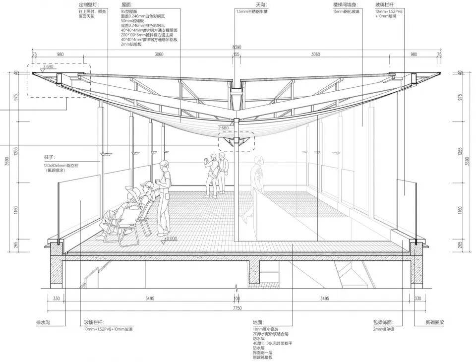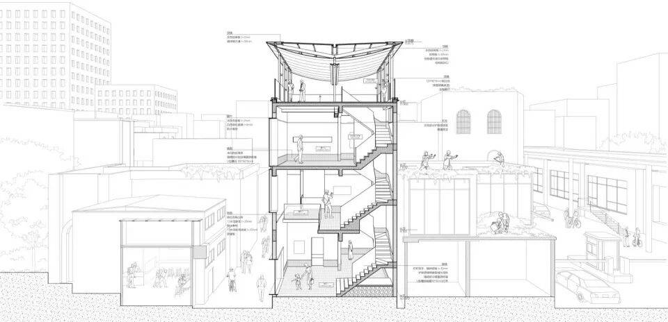 ▲“文化锚地”屋顶构造大样图© 加减智库设计事务所 PMT Partners