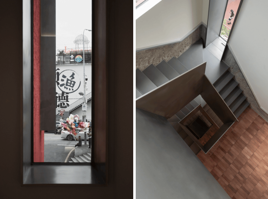 ▲拾步而上时不期而遇的“缝隙”与从窗缝窥探到的街景© 曾喆 Zhe Zeng(左),胡彦 Yan Hu(右)