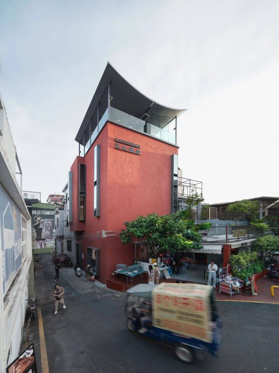基地原址是一个四层高的宅基地,已经闲置多年。他所处的位置非常有意思,这栋楼面向德胜河道,位于村口必经之地,同时也属于容桂渔人码头食品厂的范围之内,所以他的身份同时具备了旧城、旧村、旧厂三者的属性。垂直挺拔的体量也恰恰就像是城,村,厂三者之间的界碑。