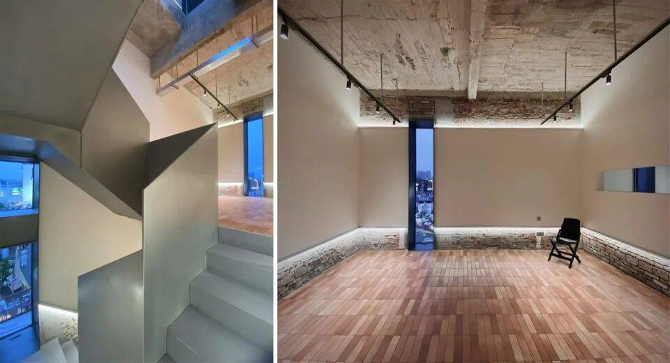 ▲裸露的混凝土楼板与墙角的红砖踢面作为原真的历史图层© 曾喆 Zhe Zeng