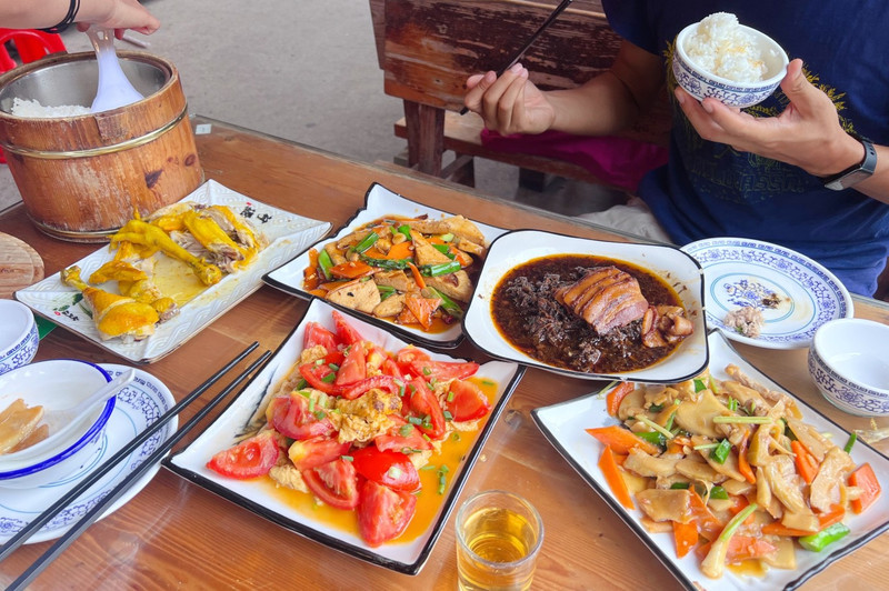 农家乐挺贵的,这么多再加一道炒蔬菜250的样子,但我们饿了,几乎吃干净了。土楼整体就是土土的,没有好看的文创,没有有逼格的咖啡店,缺了点乐趣。吃饱继续下一站。看起来人不多对吧,旅游团多,所以一阵一阵的,避开人流的瞬间拍就行。