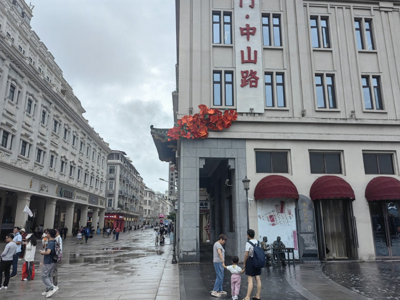 其实,已进入中山路,就有一种很清新的感觉。中山路和大部分街道的外立面类似,就是大白墙或者灰墙,所以感觉色彩就是很压抑,但是在白色或者灰色之间突然有那么几处鲜艳的红色,是不是特别或者新奇。另外,在整个中山路,我觉得还是很成功的。