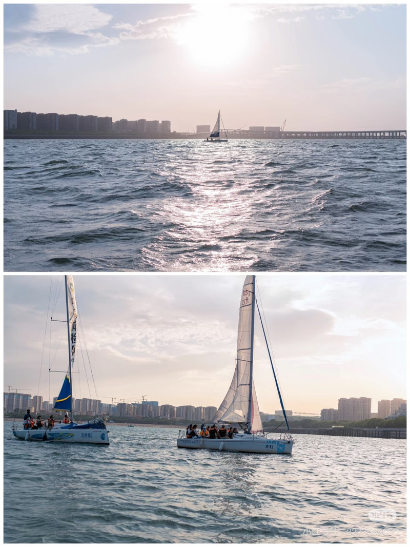 次日去五缘湾扬帆出海。坐帆船出海这事儿,还真挺有意思。刚上去那会儿有点晃,抓着栏杆不敢撒手,等船开起来就好了。风一吹,帆鼓鼓的,带着船往前跑,感觉比坐摩托艇稳当多了。海水蓝汪汪的,太阳一照晃眼睛,溅起来的浪花打在腿上,凉飕飕的挺舒服。旁边船的人笑着喊,风吹得头发乱七八糟也不管了,就觉得敞亮。