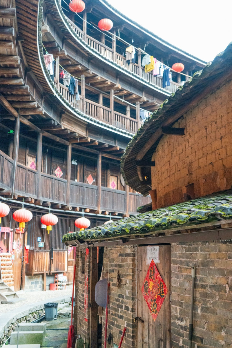 景区的土楼不可以上楼参观,这边可以,实际楼上就是一间一间客房,每一间都不大。上楼体验确实不错,可以看到砖瓦的细节,可以俯瞰全景,还可以到没有人的拍地方照。