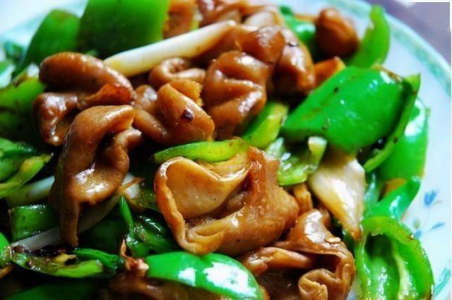 做法:1. 姜、蒜、葱洗净后切碎,干辣椒掰断,青椒去蒂去籽洗净后切块。处理过的肥肠切断了。锅置火上,烧热后倒入适量植物油烧热。