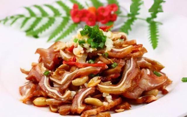食材:猪耳朵400克、香葱1棵、花椒适量、干辣椒适量、香油2小匙、精盐4小匙、味精1/2小匙
