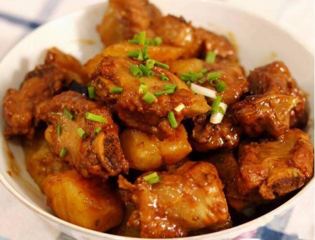 食材:猪肋排1000克、土豆1个、洋葱小半个、胡萝卜少许、葱姜蒜适量、料酒半勺、生抽1勺、老抽1勺、糖2勺、八角2个、桂皮半片、植物油2勺、盐3勺;
