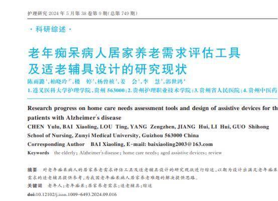 [1]陈雨潞.老年痴呆病人居家养老需求评估工具 及适老辅具设计的研究现状,2024-05-10
