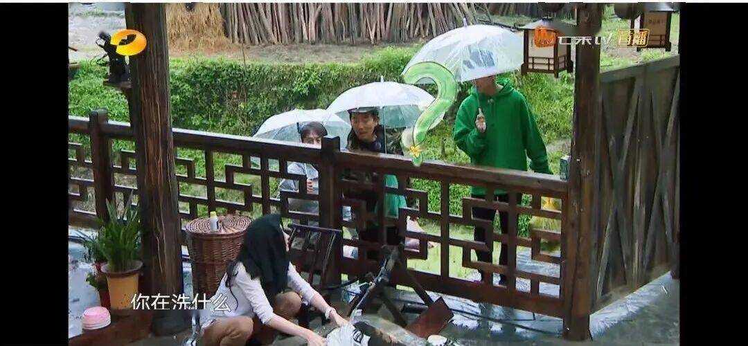 《向往的生活》里,她担心妹妹们着凉,催她们去换衣服,她自己留在外面帮大家洗脏雨衣👇