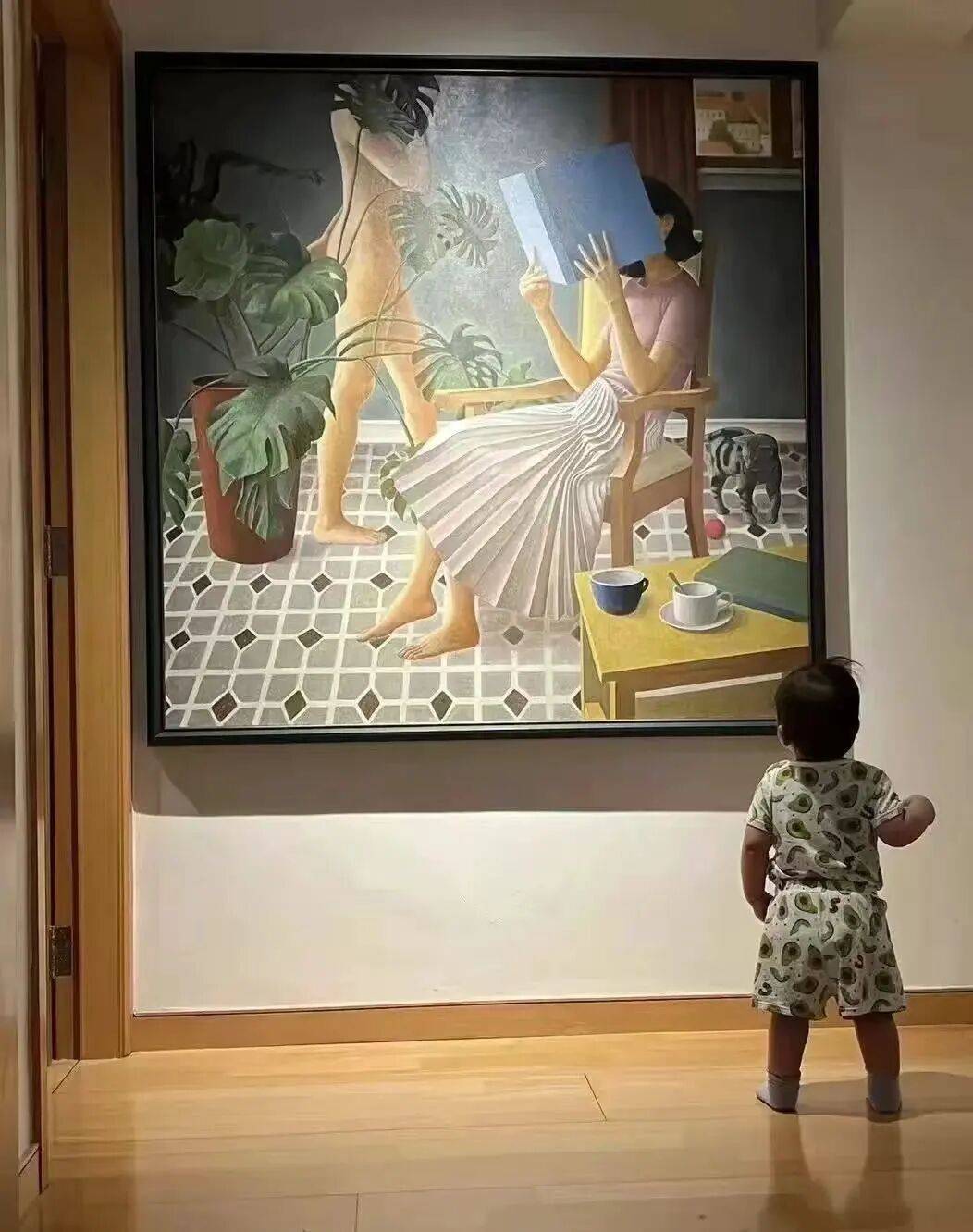 墙面挂满艺术收藏,如王健《倾城之恋》、沈涛《烟花》等