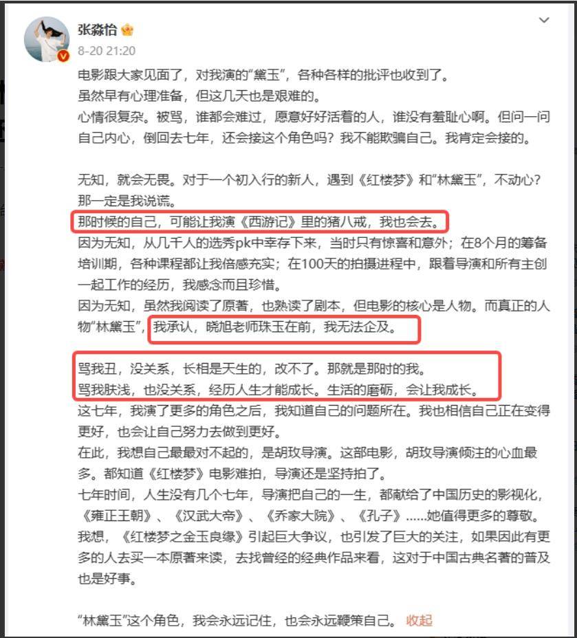 [红楼梦]新版林黛玉被质疑,张淼怡发文道歉,网友:还不如让张本智和来演 [15P] [复制链接]