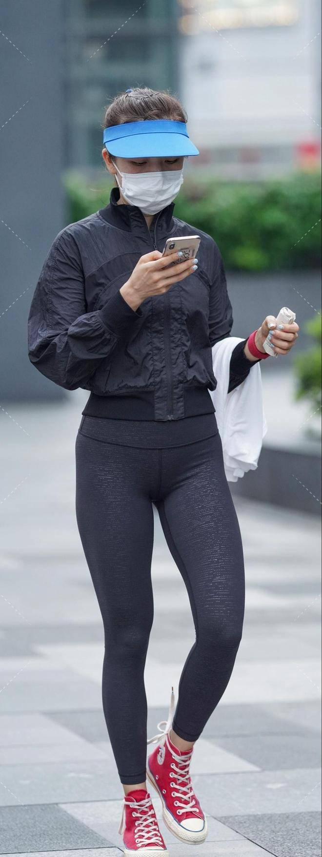 帆布鞋:增加休闲感,搭配灰色瑜伽裤+白袜,清爽又青春