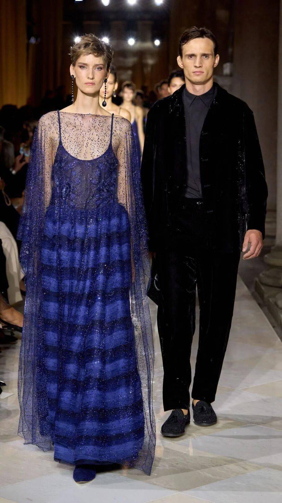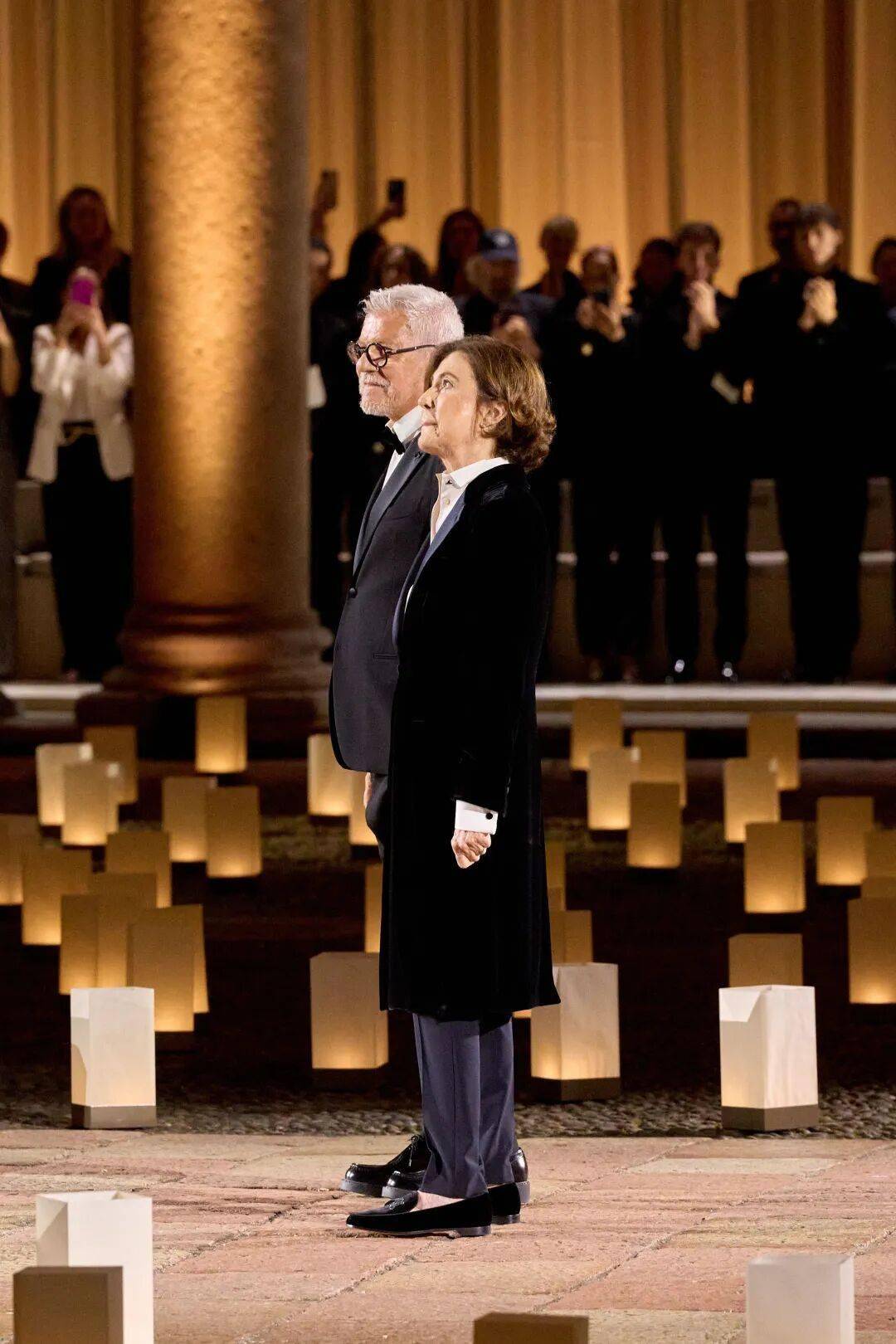 米兰夜幕低垂时,阿玛尼挥别舞台前。