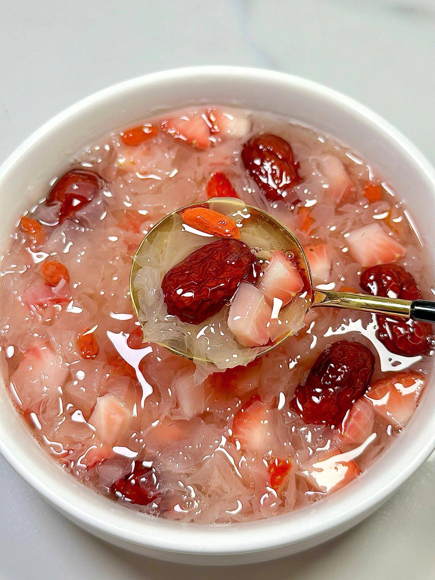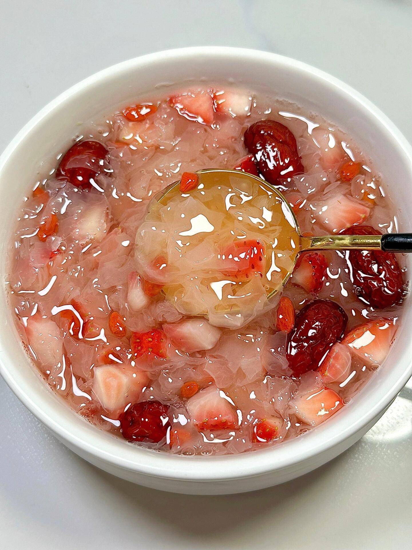 冬天的风虽然干燥,但有了这道草莓银耳羹,你的皮肤也能水润如初。快去试试吧,让这道羹成为你冬日里的小确幸!