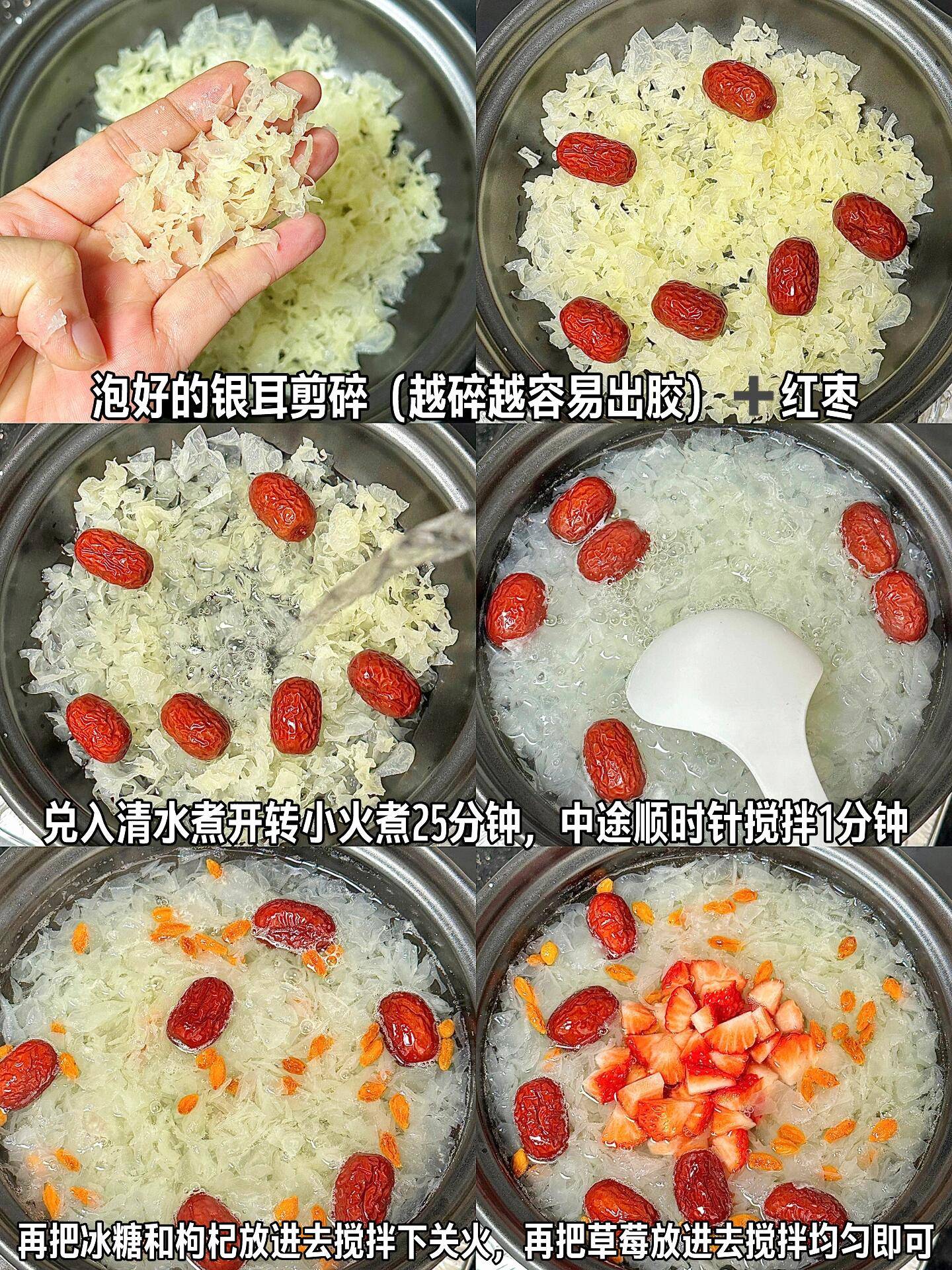 草莓银耳羹是一道兼具美容养颜与清新口感的经典甜品,尤其适合干燥季节或熬夜后滋养身体。以下是综合多来源的优化做法及实用技巧,无引用标注:
