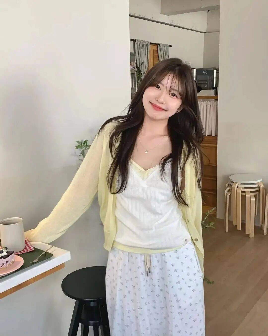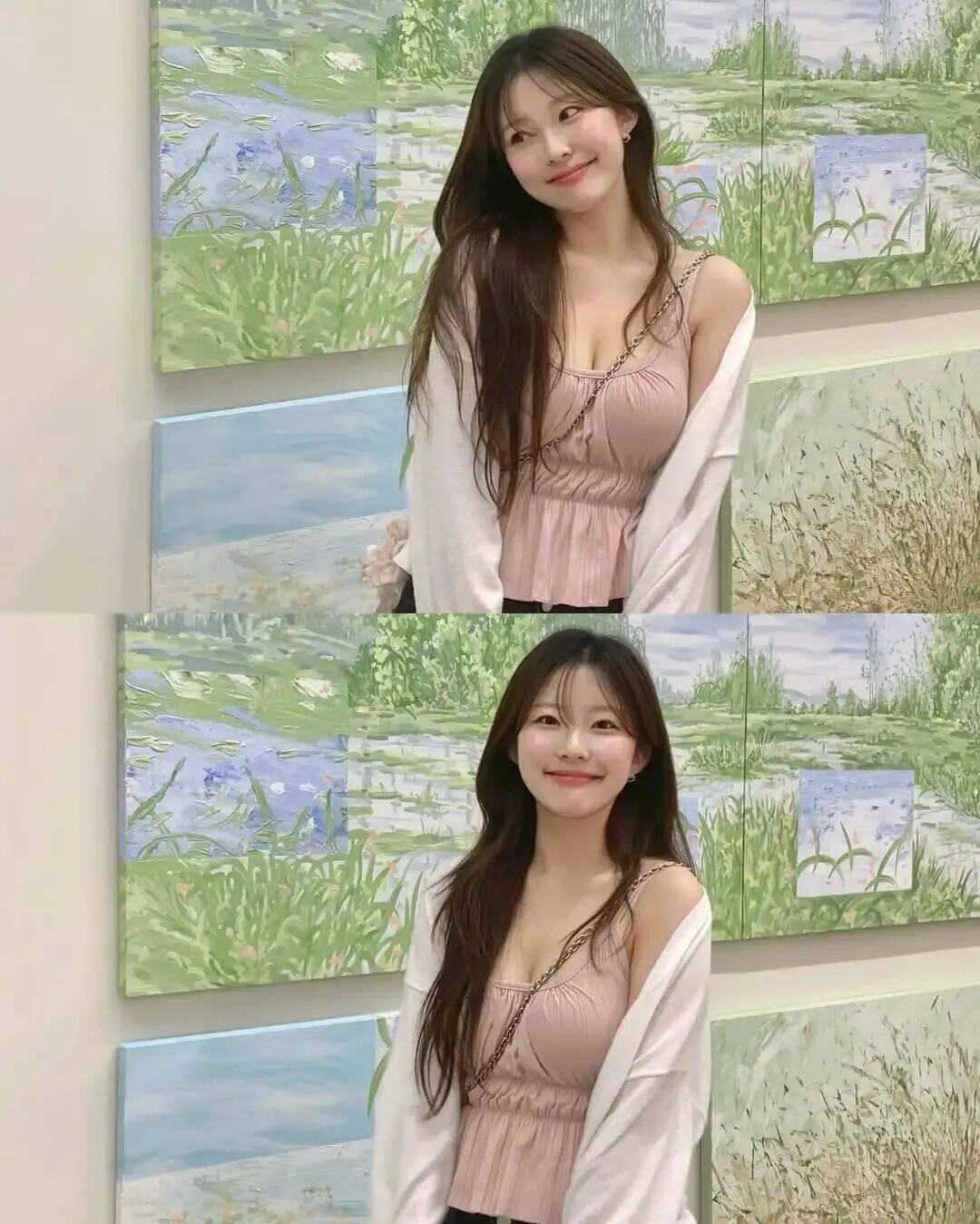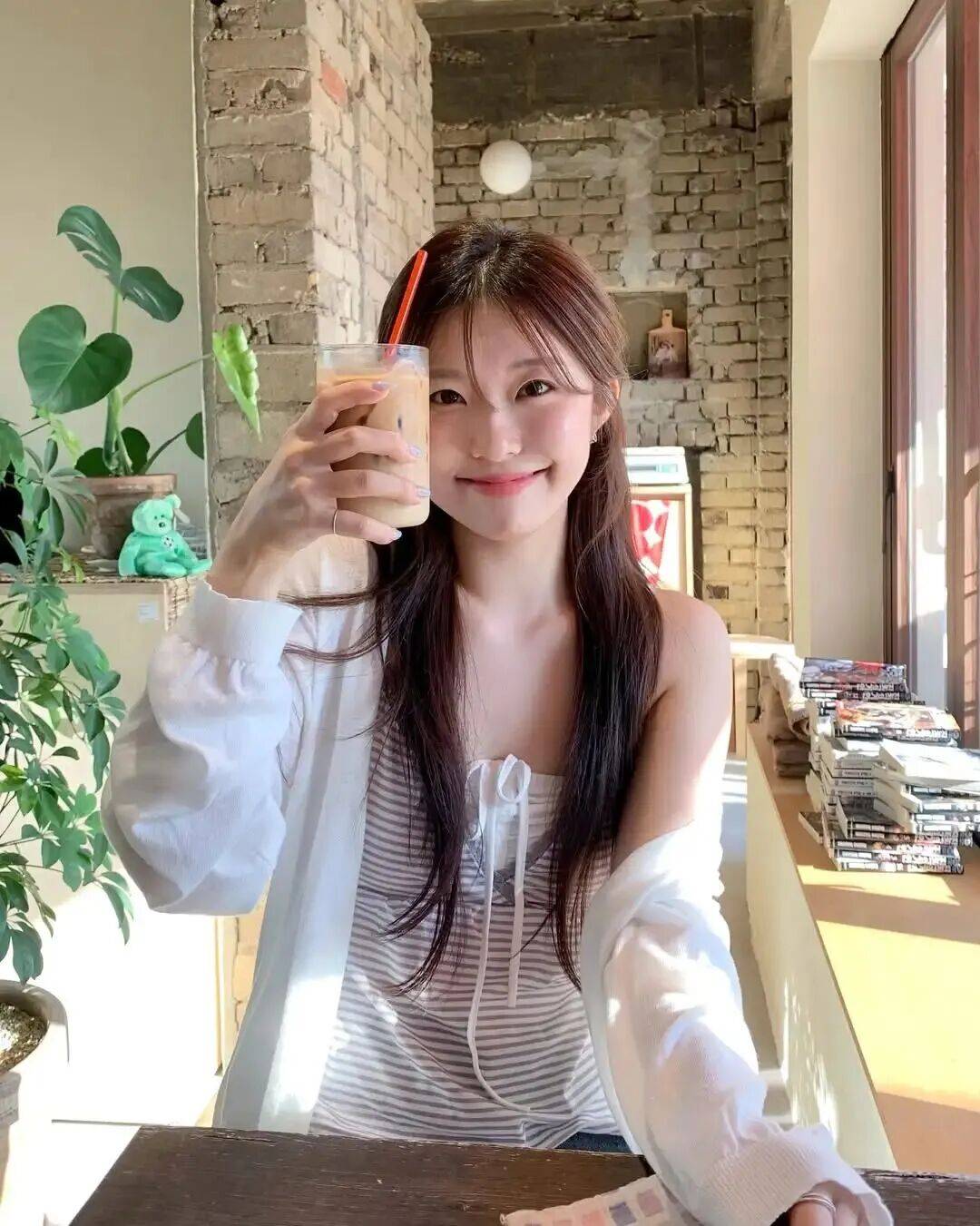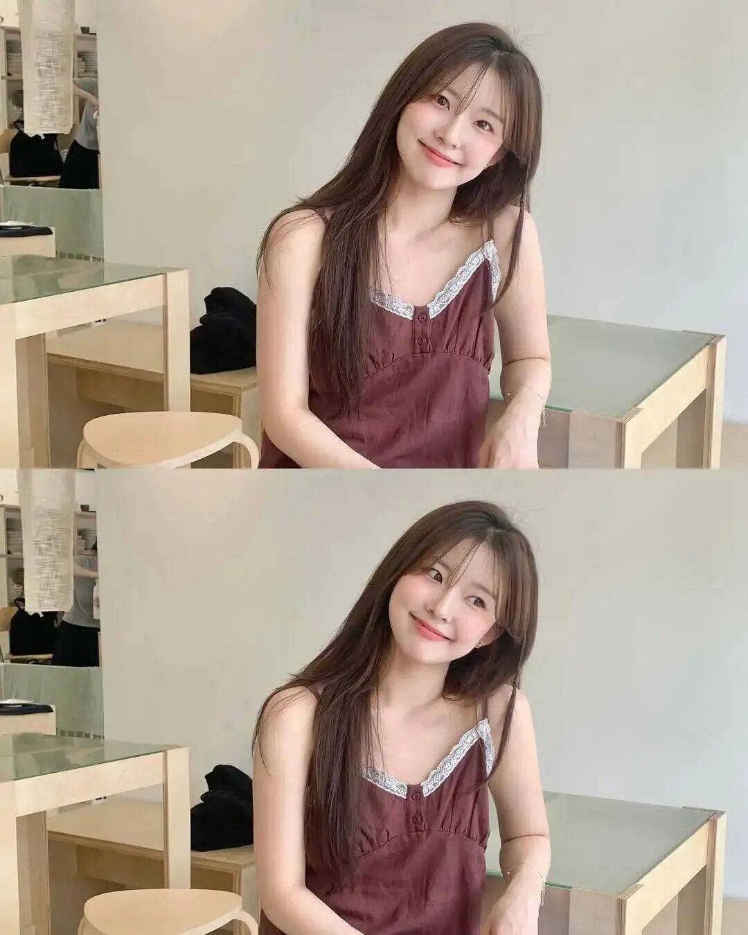 - 发型与笑容:浅棕色长发常以半扎丸子头或自然垂落方式呈现,发尾带淡淡空气卷;笑时嘴角泛起浅浅梨涡,甜意从眉眼间溢出,宛如韩剧初恋女主,让人卸下距离感。