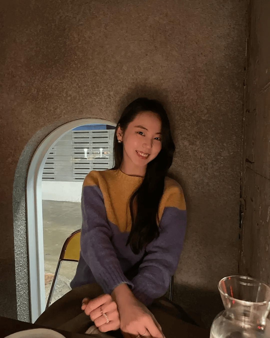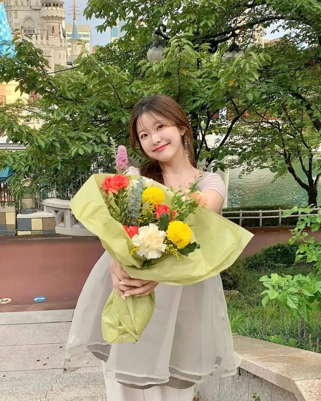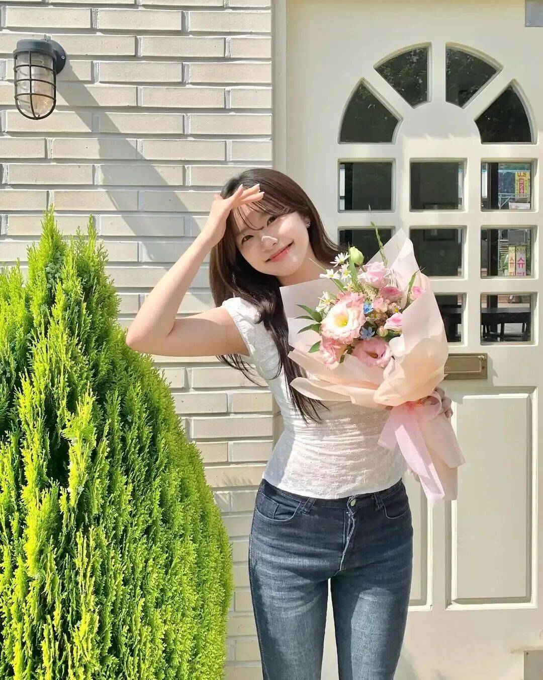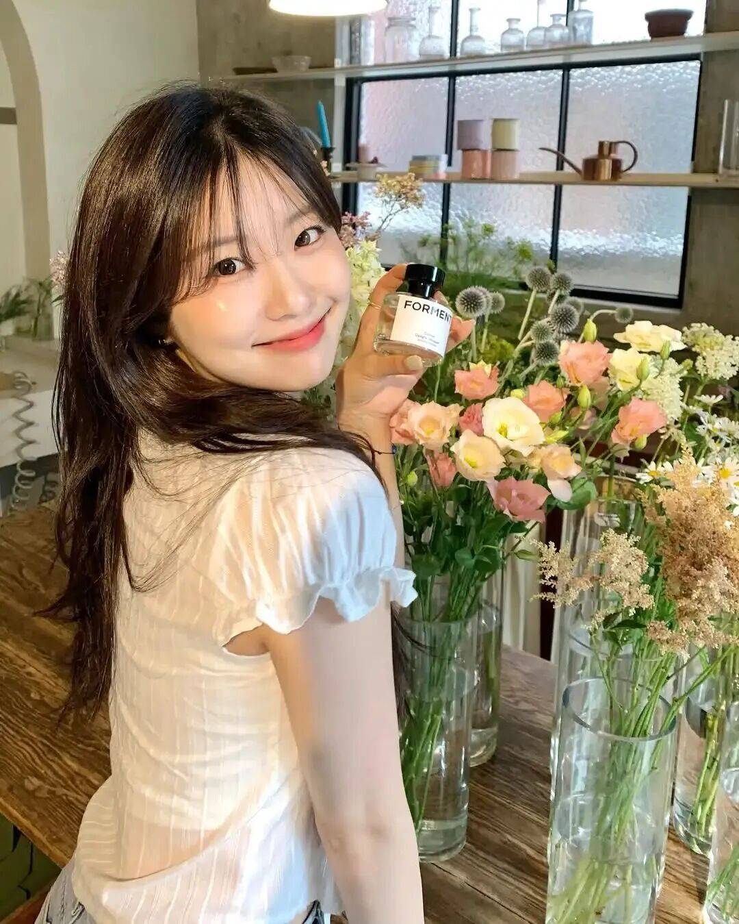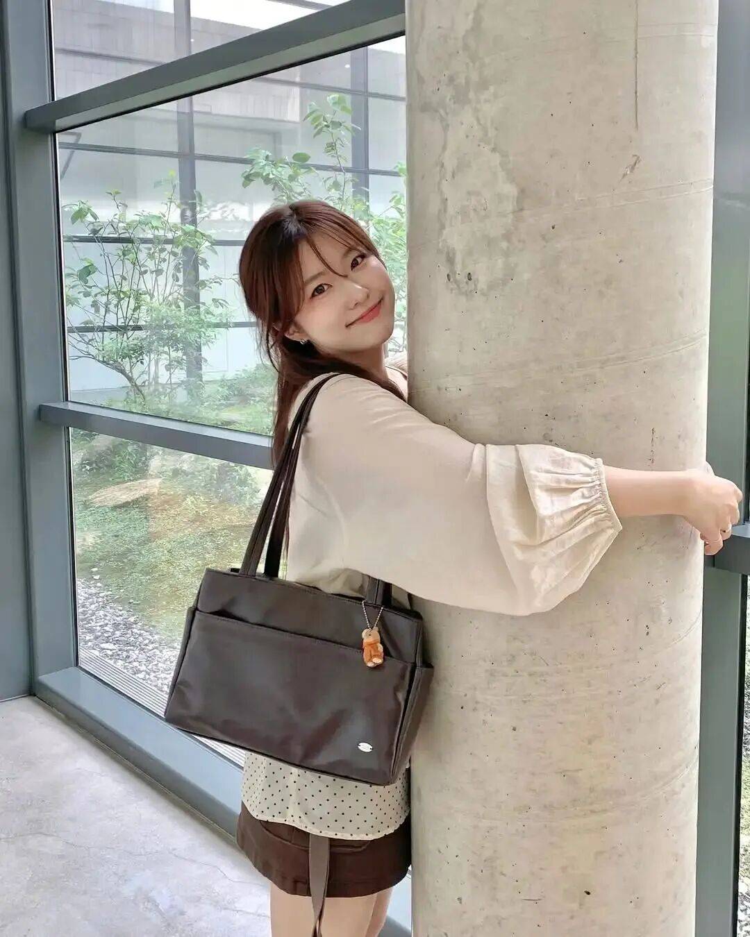 - 发型与笑容:浅棕色长发常以半扎丸子头或自然垂落方式呈现,发尾带淡淡空气卷;笑时嘴角泛起浅浅梨涡,甜意从眉眼间溢出,宛如韩剧初恋女主,让人卸下距离感。