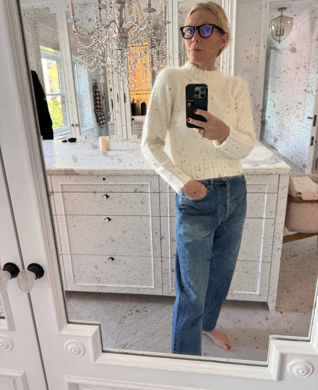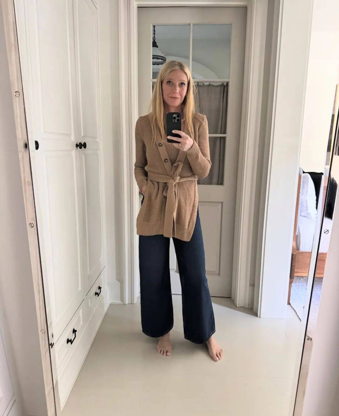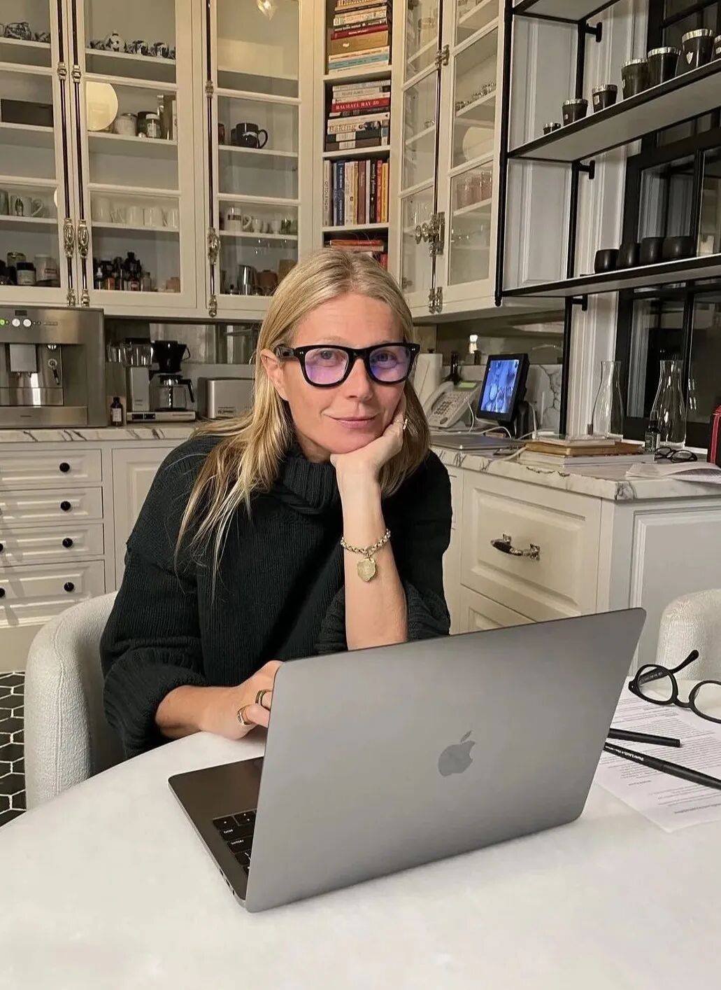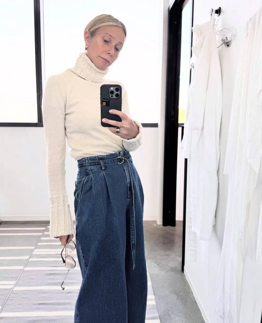 - 数量惊人:据Goop团队探访,她的针织衫多达100件,涵盖各种材质(羊绒、羊毛、棉)和款式(高领、圆领、polo领)。