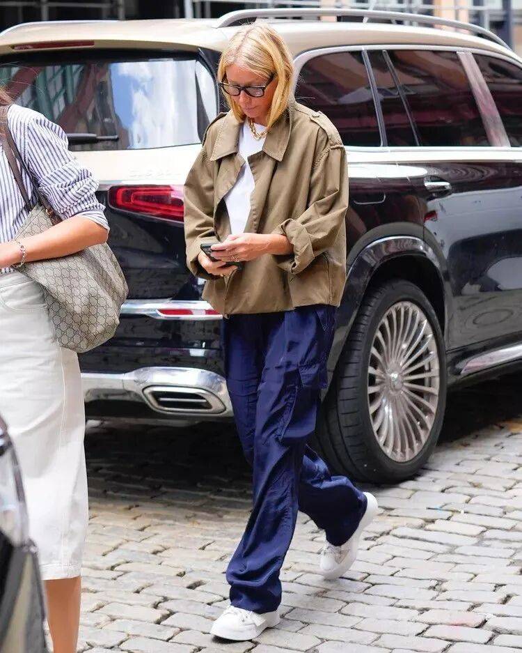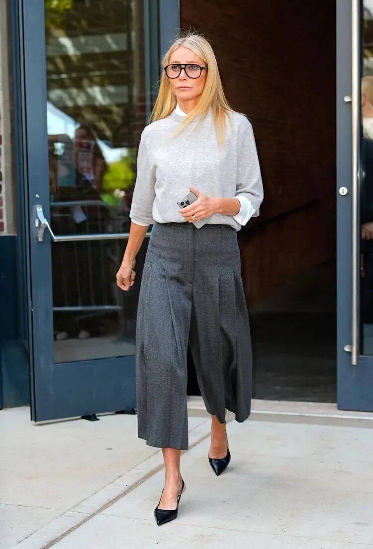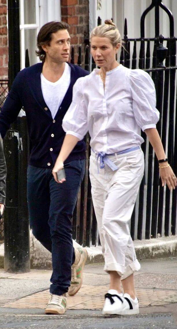正如你提到的,格温妮斯与现任丈夫布拉德·法尔查克(Brad Falchuk)在意大利的合影令人印象深刻。两人身着浅色调毛衣搭配白裤子,舒展而亲密的姿态,展现了50多岁伴侣间罕见的松弛感与幸福感。这种“干净的简约风”正是格温妮斯风格的核心体现——无需过多装饰,仅通过优质面料和利落剪裁便能传递高级感。
