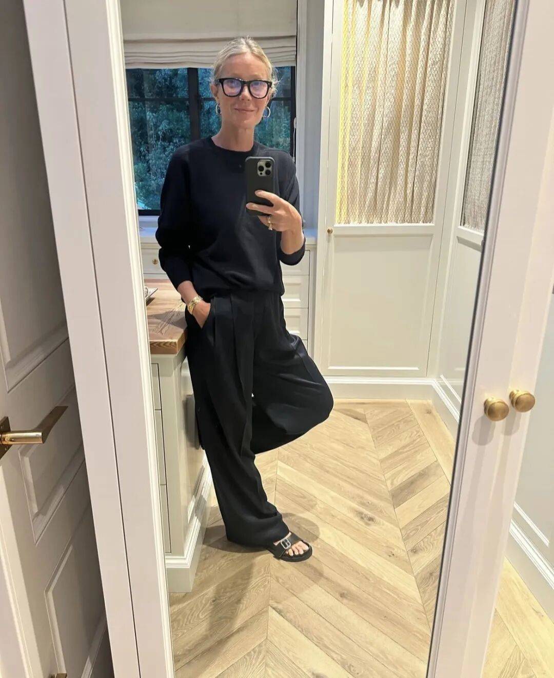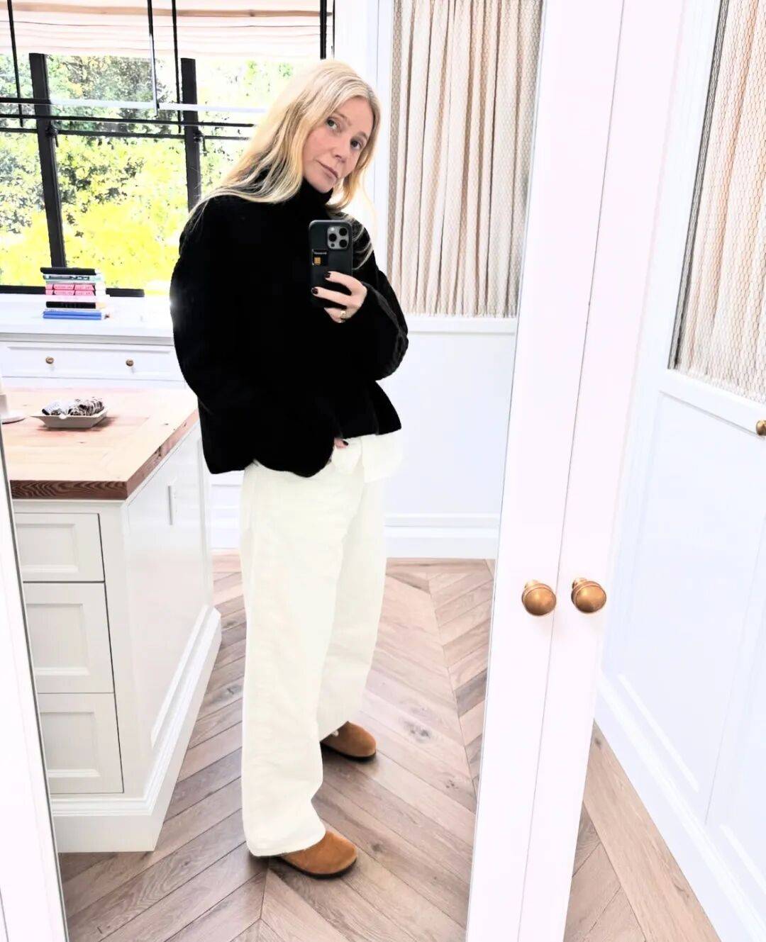 她在 Ins 上持续分享过自己的日常穿搭,在这些对镜自拍里可以看到更真实的日常参照。