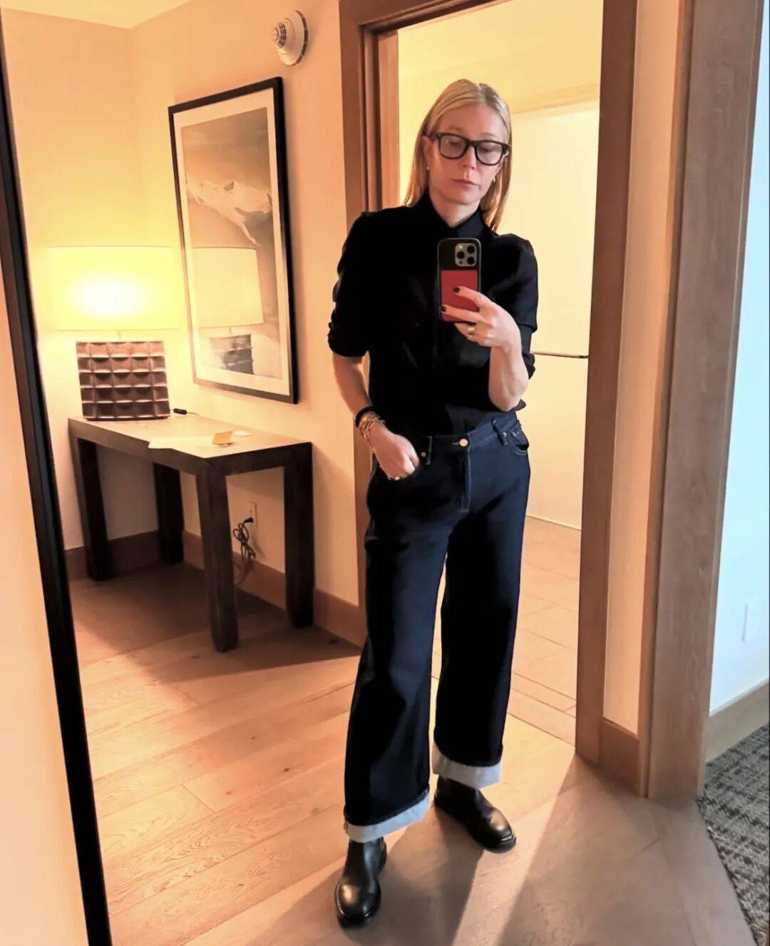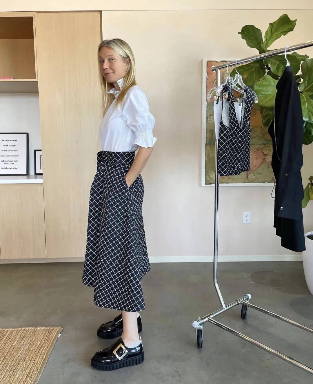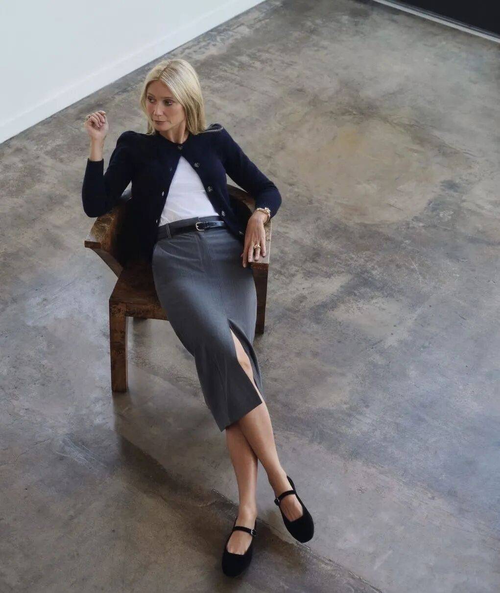 格温妮斯的衣橱看似简单,实则充满智慧。她曾坦言:“我在生活中穿得最多的就是针织衫和牛仔裤。” 这些基础单品通过高质量面料和巧妙搭配,实现了“少即是多”的时尚哲学。