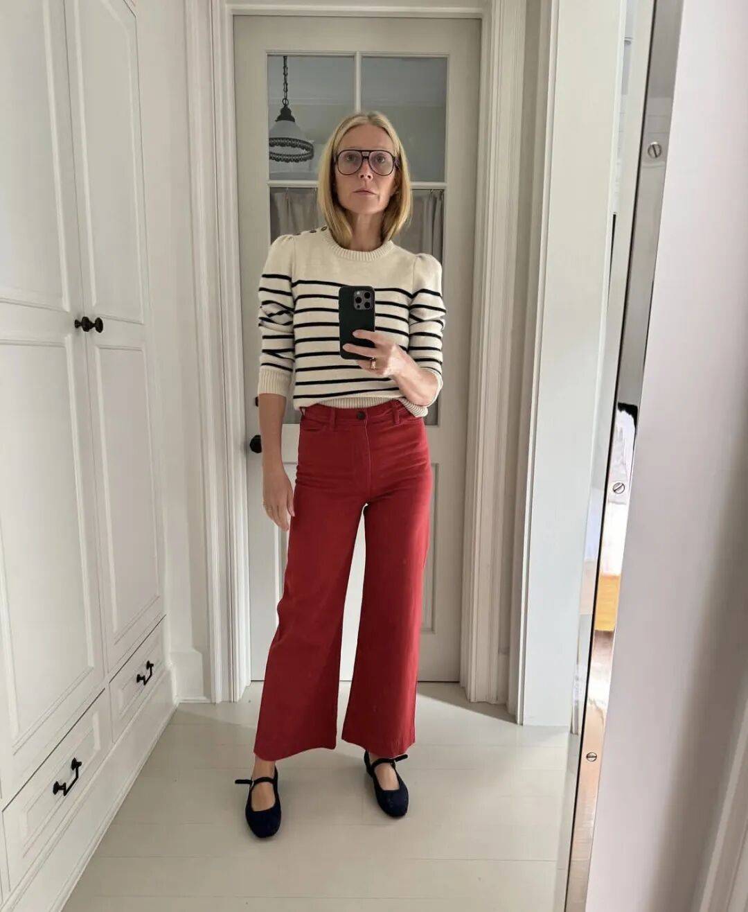 近年来格温妮斯偏爱玛丽珍平底鞋,如Loewe勃艮第红皮革款和Alaïa经典款。这些鞋子不仅舒适好走,还能为整体造型增添摩登细节。她曾表示:“作为一个忙碌的母亲和职场女性,舒适永远是第一位的。”