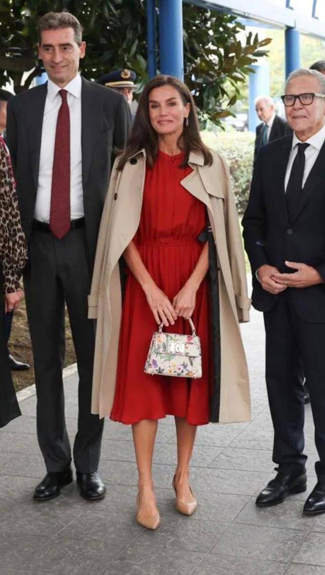 - 红色:作为其标志性色彩,象征西班牙文化热情与王室威严。无论是红裙还是红色西装,总能展现她的干练与自信。