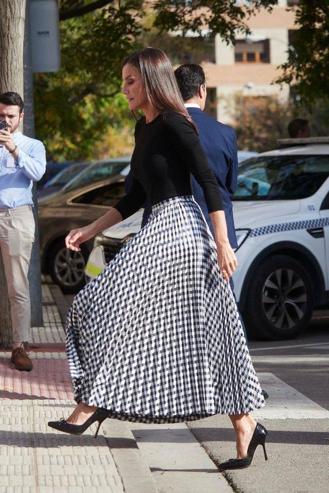 黑色的包身裙搭配黑色的包包,色调上的搭配,莱蒂西亚王后一直很在意。简洁的黑白配色,把她的沉稳大气展现得淋漓尽致,又恰到好处地突出了她的端庄气质。