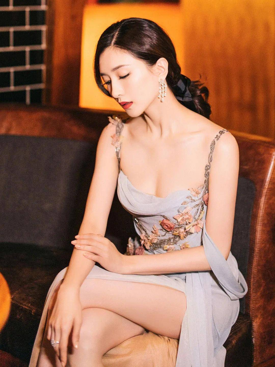 身为当红女星,江疏影拍过很多性感写真,就像这张她穿着灰色吊带纱裙,俏脸清丽脱俗,低头凝视若有似思,精致的五官,烈焰的红唇,露出白皙的香肩和事业线,盘起修长的大美腿,绝对性感火辣!
