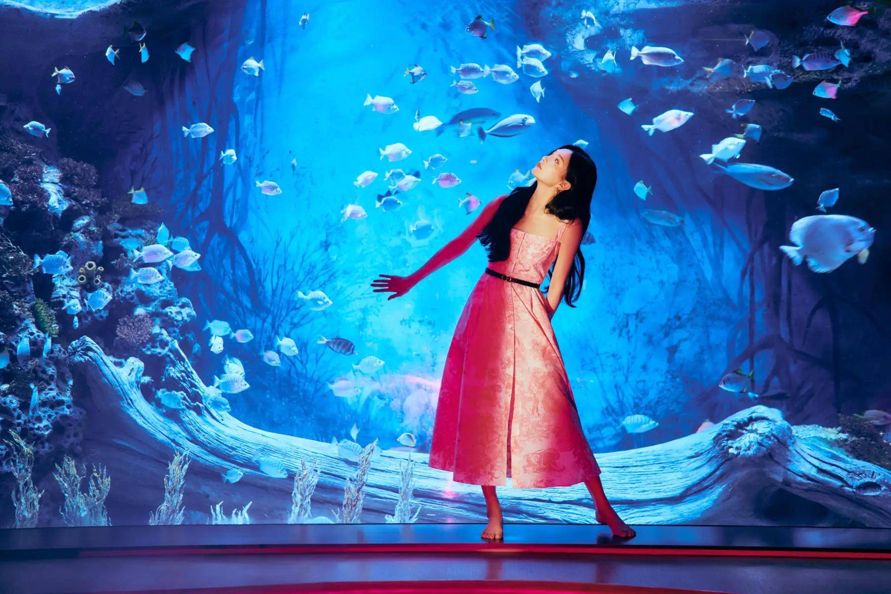 这次,江疏影化身为鎏光幻境中的公主,与水族馆里的奇幻世界共舞,令人仿佛置身于一个如梦如幻的仙境。