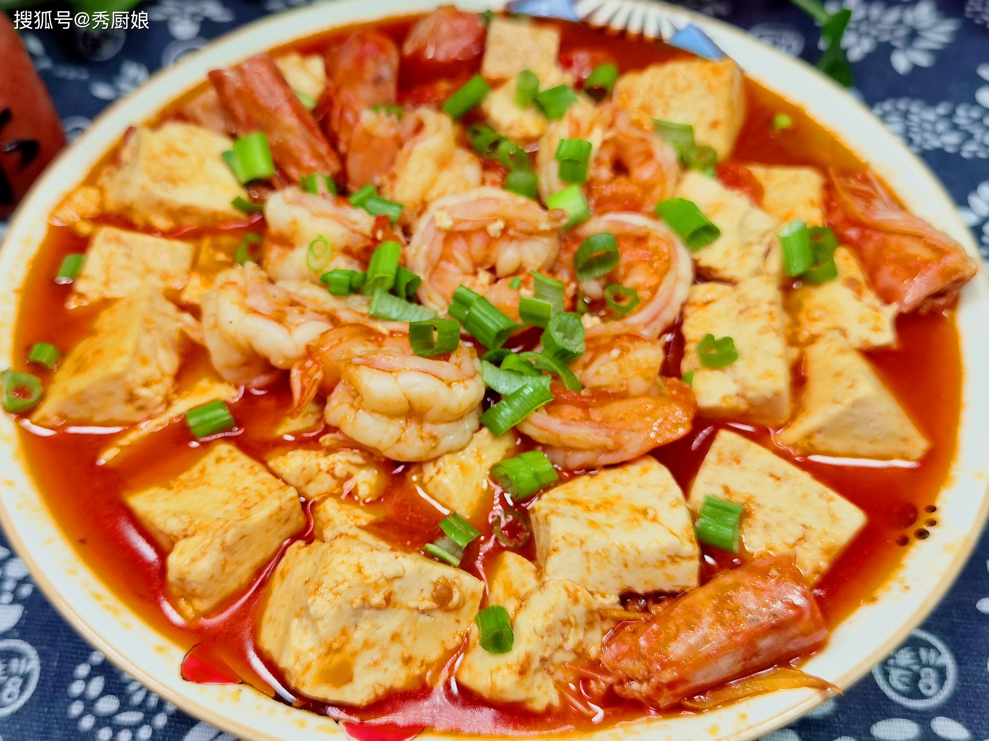 5. 出锅装盘:撒上葱花即可。汤汁浓郁,豆腐嫩滑,虾仁Q弹,非常适合搭配米饭食用。
