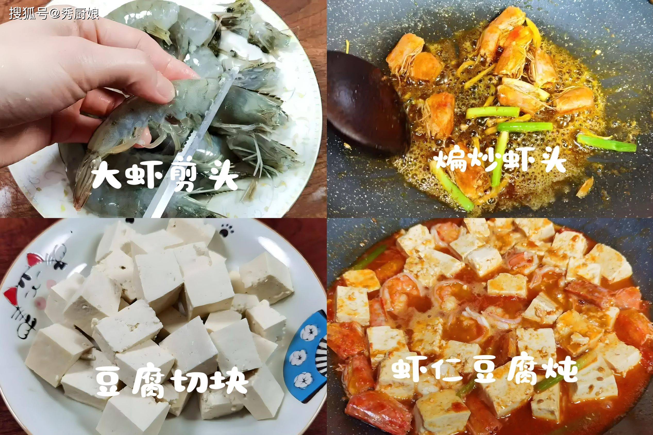 1. 处理食材:虾仁去壳去虾线,用少许料酒和白胡椒粉腌制10分钟去腥;西红柿顶部划十字,用开水烫10秒后去皮,切成小丁;豆腐切成2厘米见方的块。