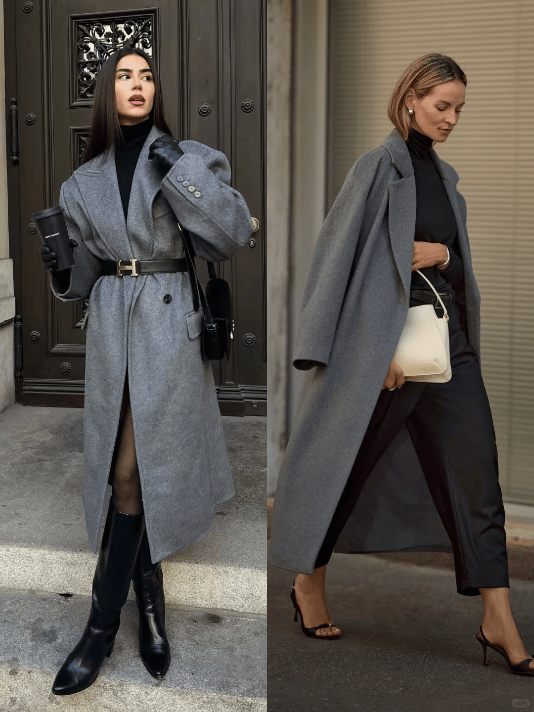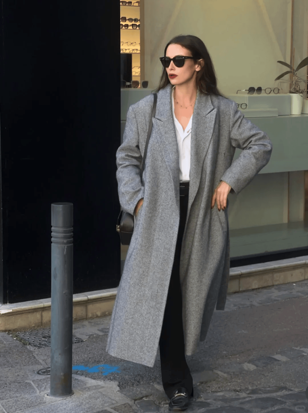 灰色大衣:选“迷月灰”或“炭灰”,面料要选羊毛呢或羊绒,版型利落(比如H型或茧型),搭配长靴或阔腿裤,像“行走的艺术品”;