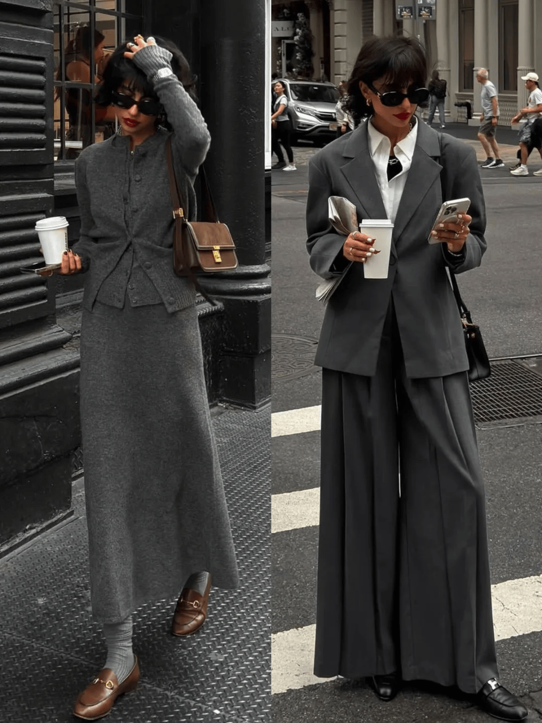 一件灰色单品,无需过多修饰,就能穿出毫不费力的时髦感。