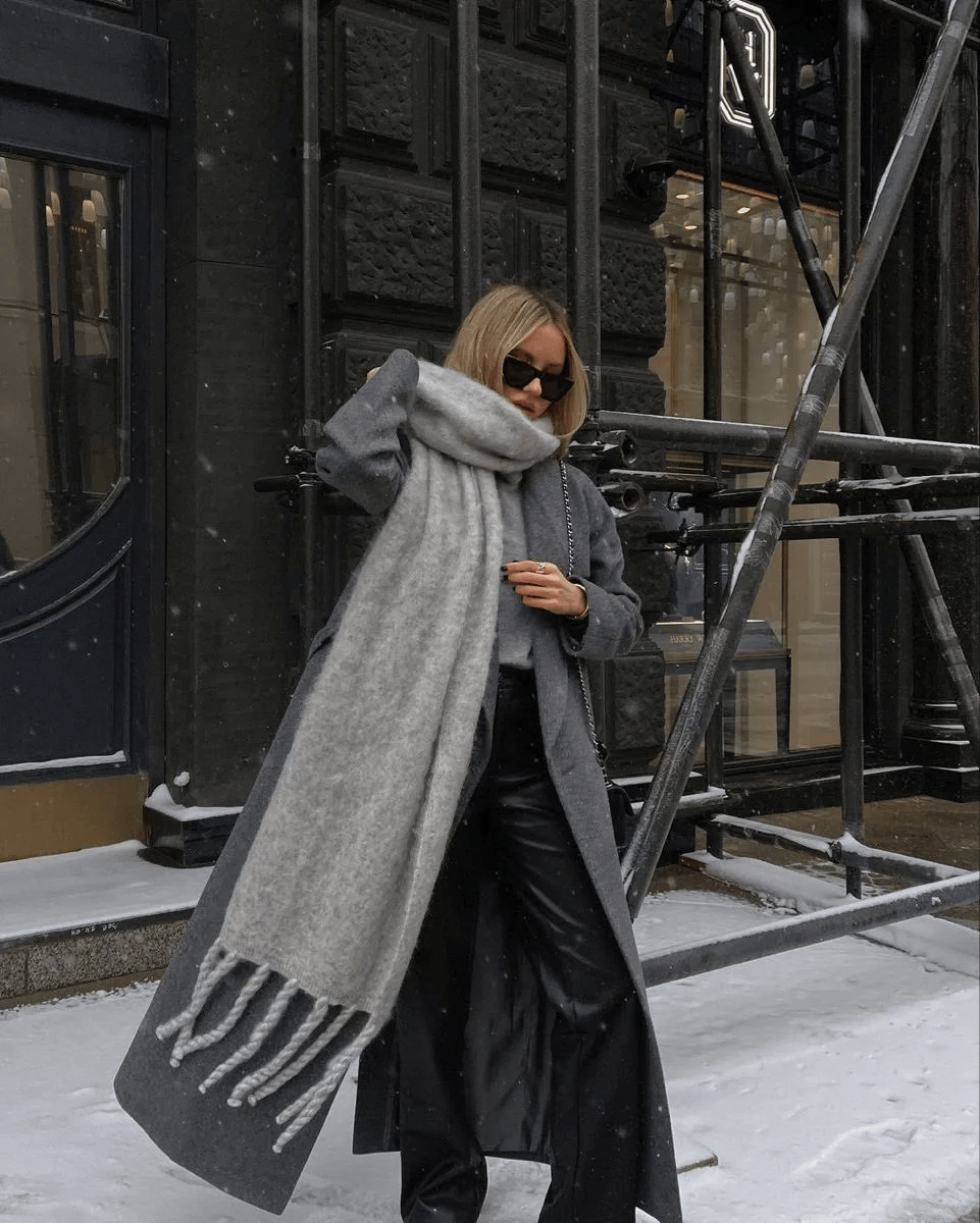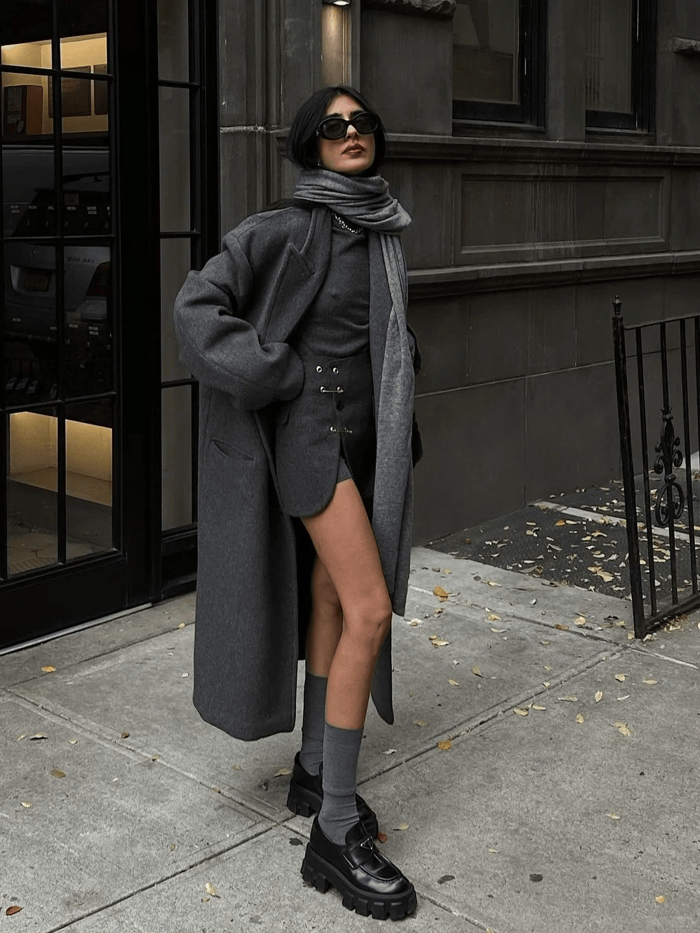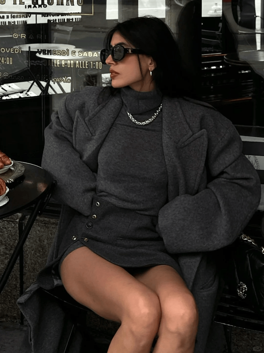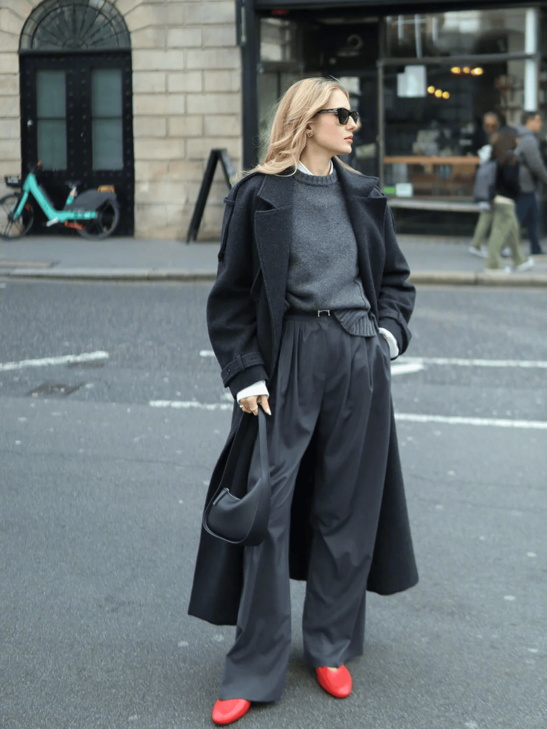 炭灰色单品往往带着一种低调的奢华感,能够让你的冬季穿搭更具个性。