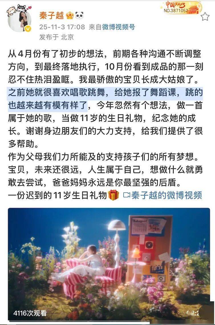 2023年1月,天天迎来妹妹,如今姐弟俩在父母的呵护下健康成长。天天不仅在影视剧中客串演出,在杂志拍摄、演唱会亮相等方面也崭露头角,未来或将成为娱乐圈的新星。