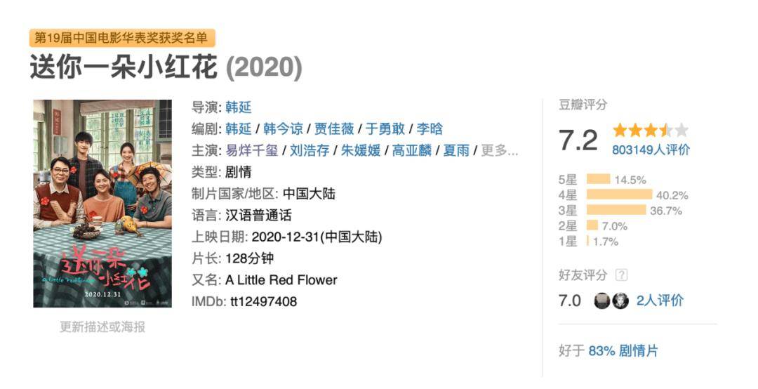 - 《送你一朵小红花》(2021):第二次提名,展现对癌症患者的细腻刻画。