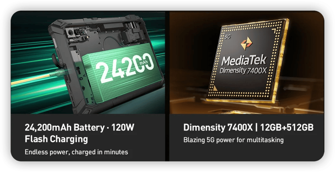 Armor Pad 5 搭载联发科天玑 7400X 处理器,辅以 12GB 运行内存和 512GB 存储。
