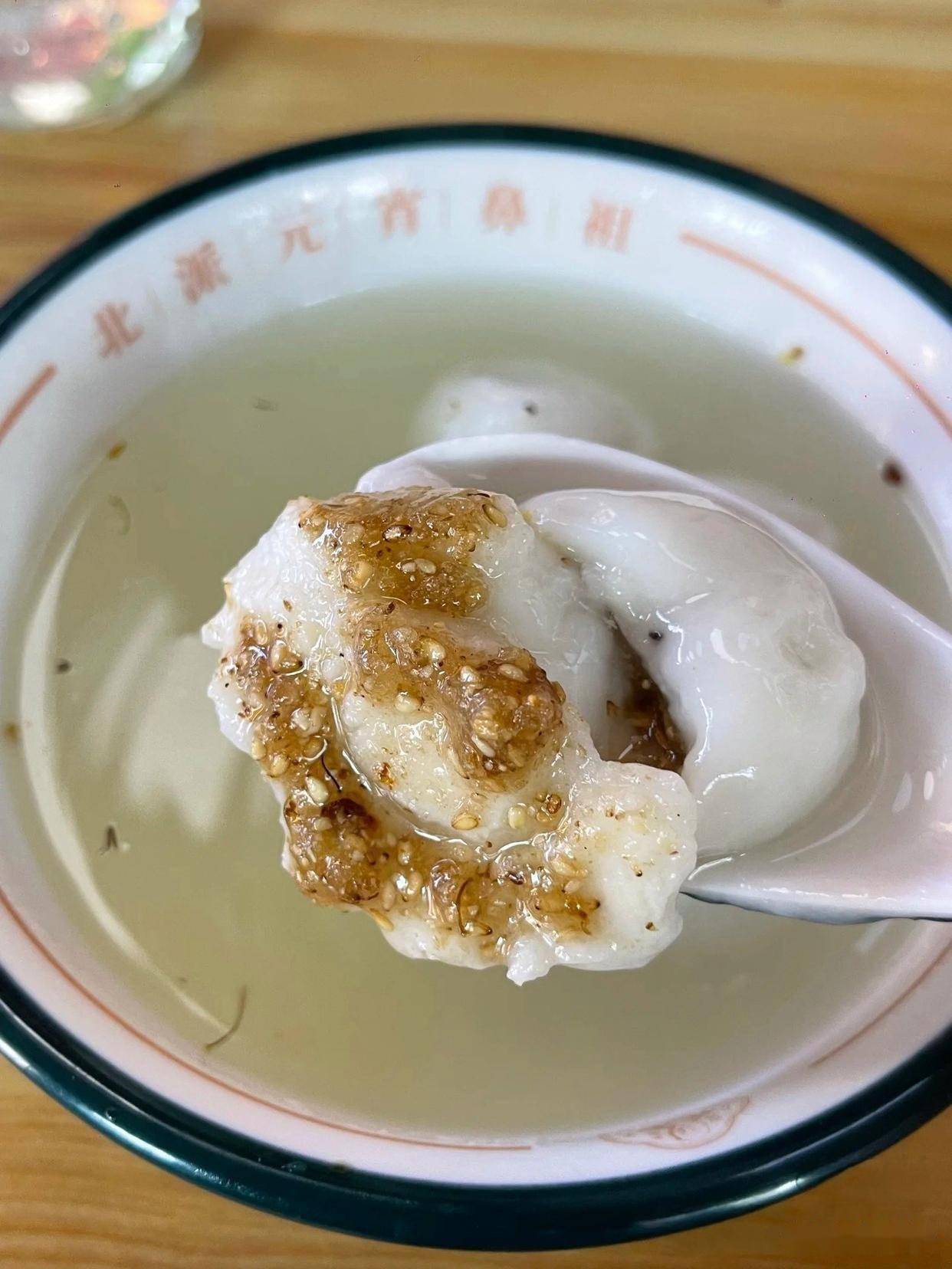 晋祠泉水泡米,石磨碾粉,核桃芝麻玫瑰桂花酱炒馅,再经六次蘸水滚粉,咬开软糯瓷实,甜香直钻喉咙眼,老太原人咂摸一口就说“得劲”!