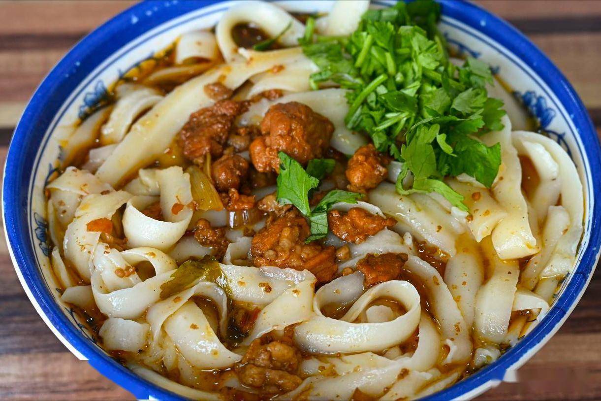 中厚边薄似柳叶,外滑内筋越嚼越香,浇勺肉臊子,再淋点老陈醋,“可带劲了”!