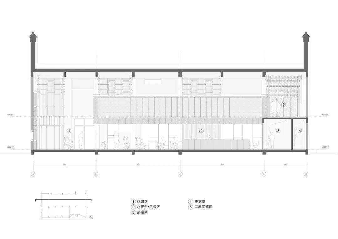 △ 书院主空间北立面图 © MMA脉思脉得建筑事务所