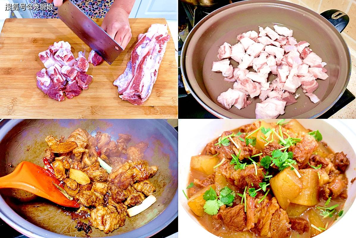 5. 白萝卜切滚刀块,放入锅中,继续炖20分钟至萝卜透明软糯;