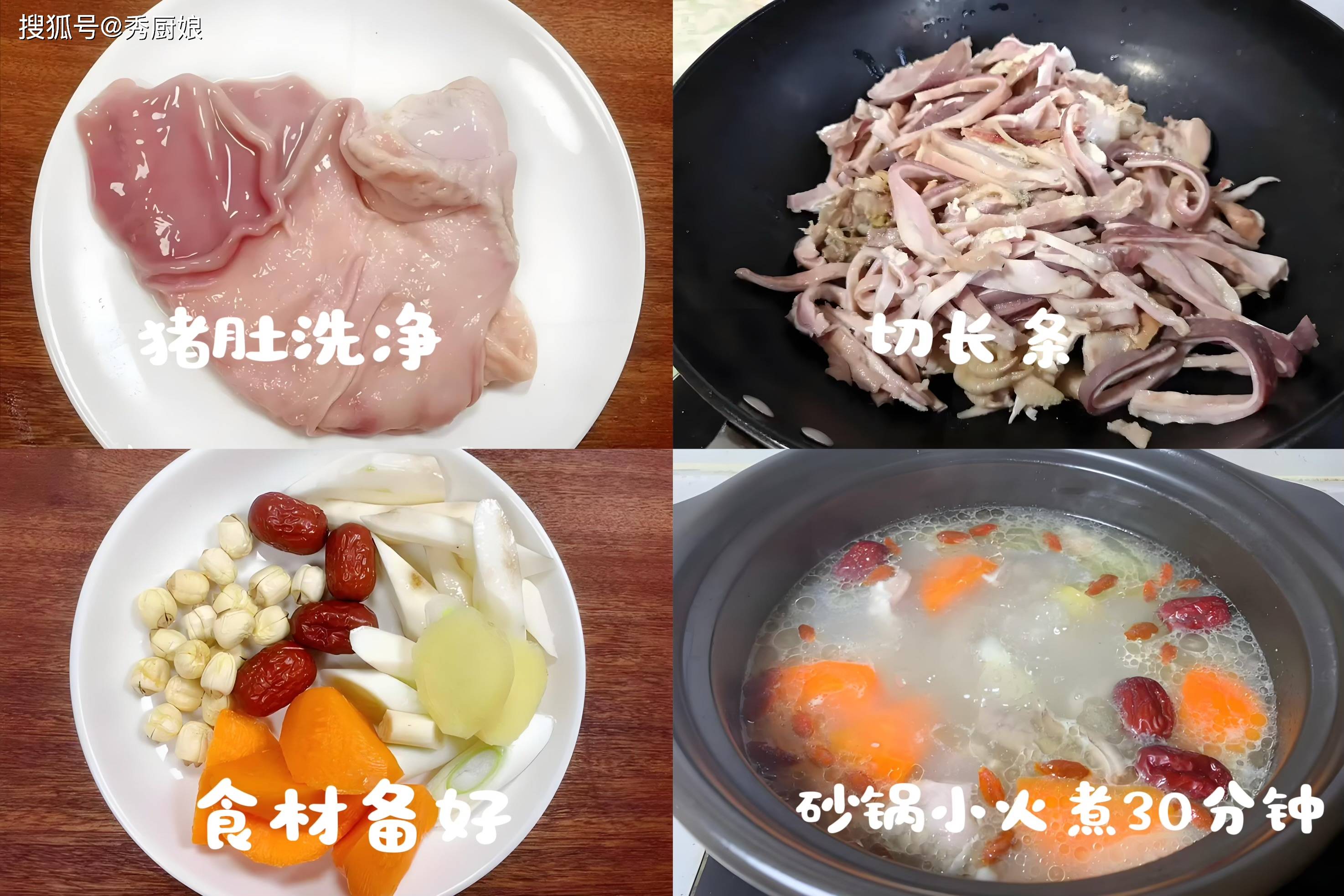 食材:猪肚1个、山药200克、莲子30克、红枣8颗、枸杞1小把、胡萝卜1根、生姜、胡椒粉、盐。