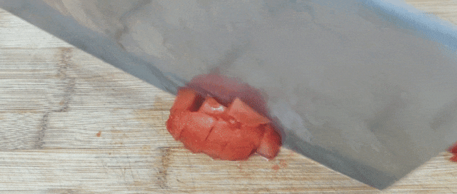 趁这个时间准备一个西红柿剥去外皮,切成小丁;